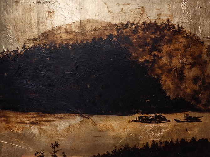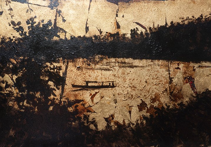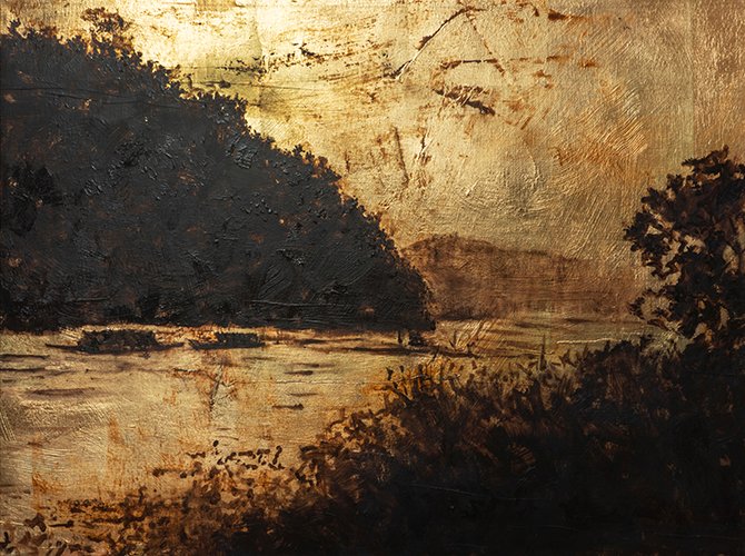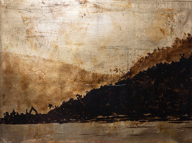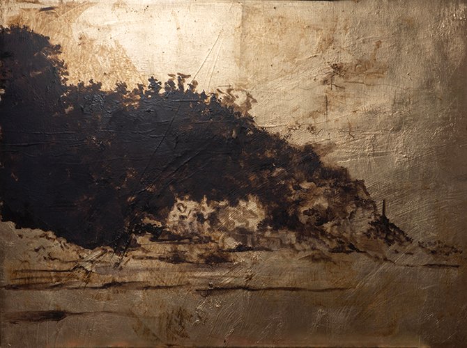 óleo sobre lienzo y laminilla de bronce 70 x 180 cm