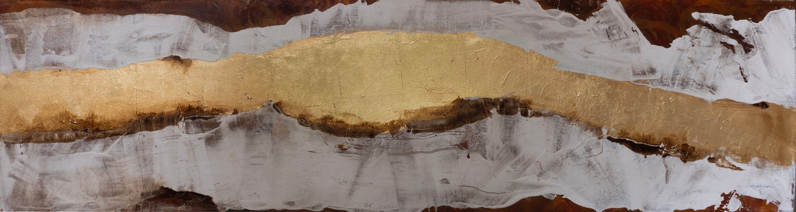 óleo sobre lienzo y laminilla de bronce 50 x 190 cm